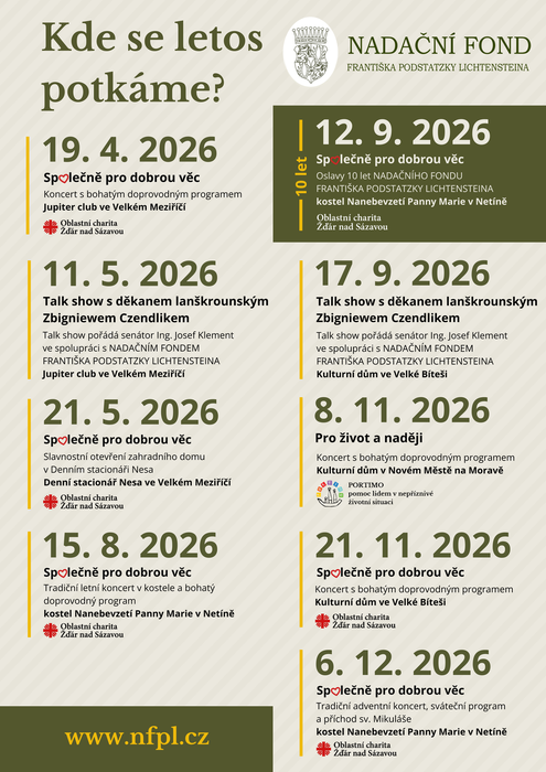 Nadační fond Františka Podstatzky Lichtensteina (NFPL) slaví své první kulaté jubileum – již deset let podporuje organizace a projekty, které na Žďársku, Velkomeziříčsku, Novoměstsku a Bystřicku zlepšují kvalitu života obyvatel regionu.